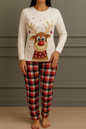 بلوز شلوار وارداتی -پنبه ای-رنگ سفید و چهارخونه