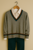 دور یقه نوار سرمه ای و زرشکی بافته شده